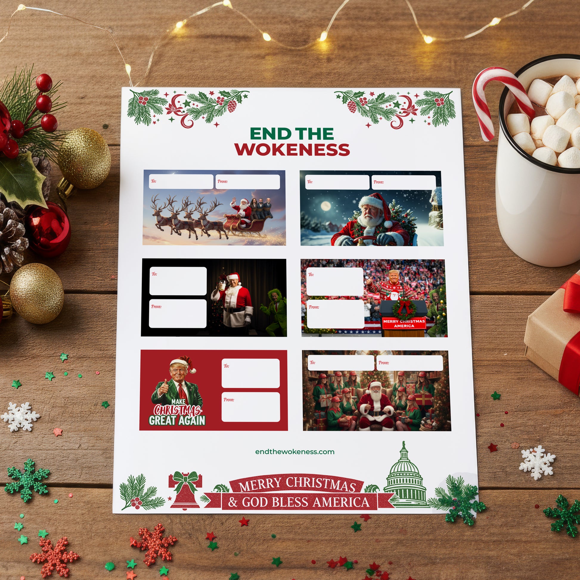 🎅 End The Wokeness – Patriotic Christmas Label Sheet 🎄
